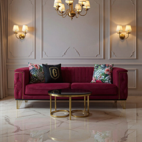 Crimson Velvet Luxe Sofa