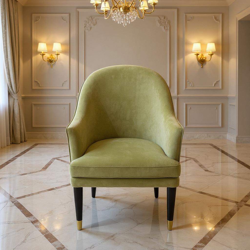 • Sage velvet upholstered chairs for plush, refined comfort