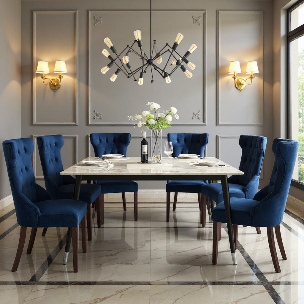 The Azure Luxe Marble Dining Set blends modern elegance with rich comfort.
