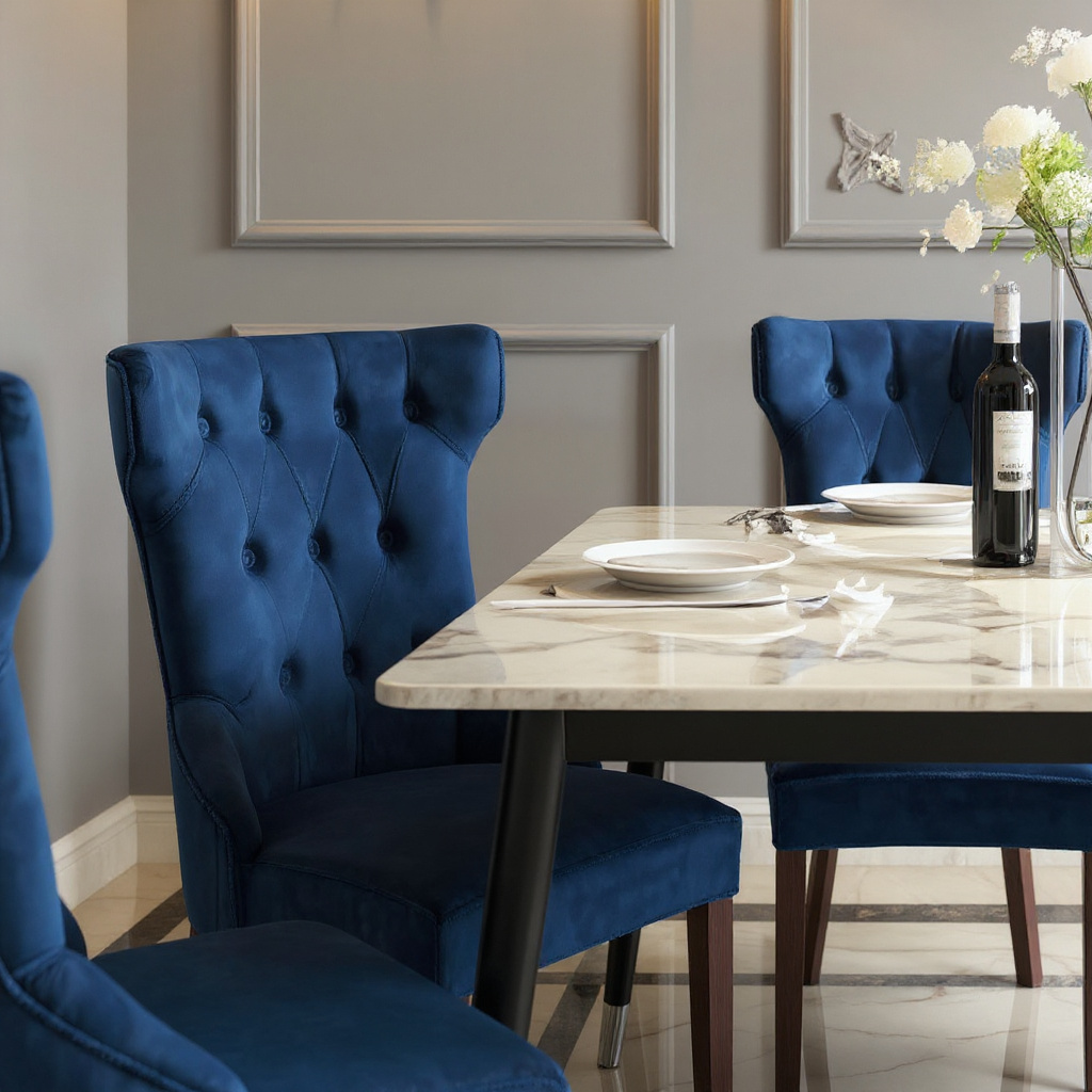 - Royal blue tufted velvet chairs for bold elegance and comfort
