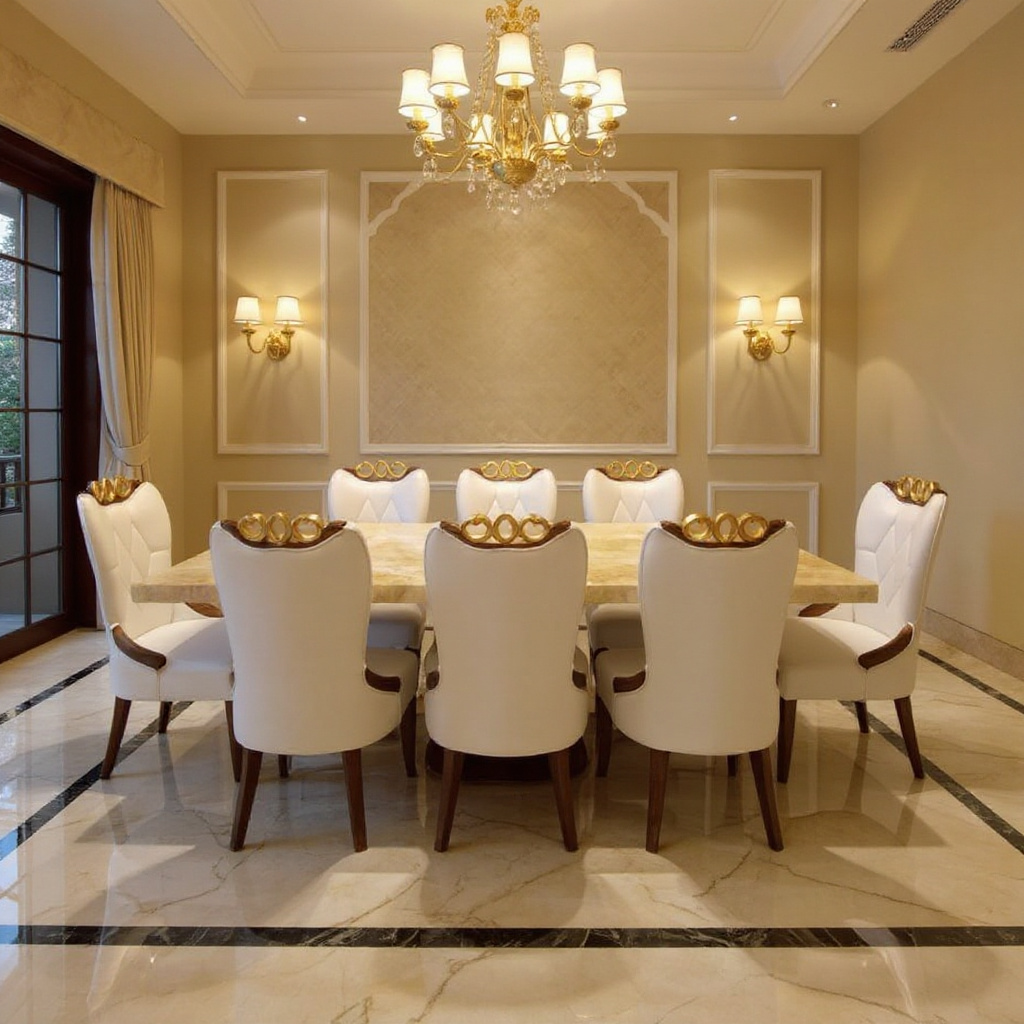 Aesthetic Ideal for luxury homes seeking an opulent, royal, and gracefully sophisticated dining ambience