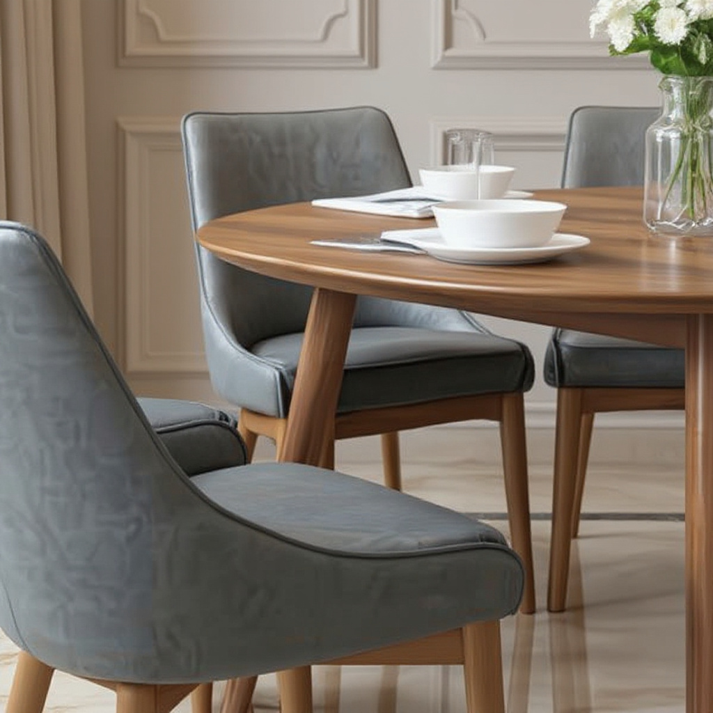 The Nordic Aura Round Dining Set blends warm wood tones with smooth, modern upholstery for effortless elegance.