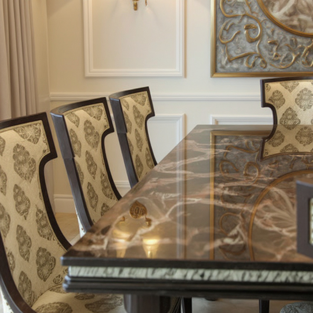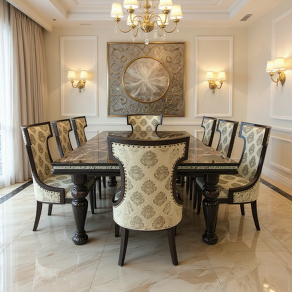 Aesthetic Ideal for luxury homes seeking a regal, classical, and richly detailed dining ambience