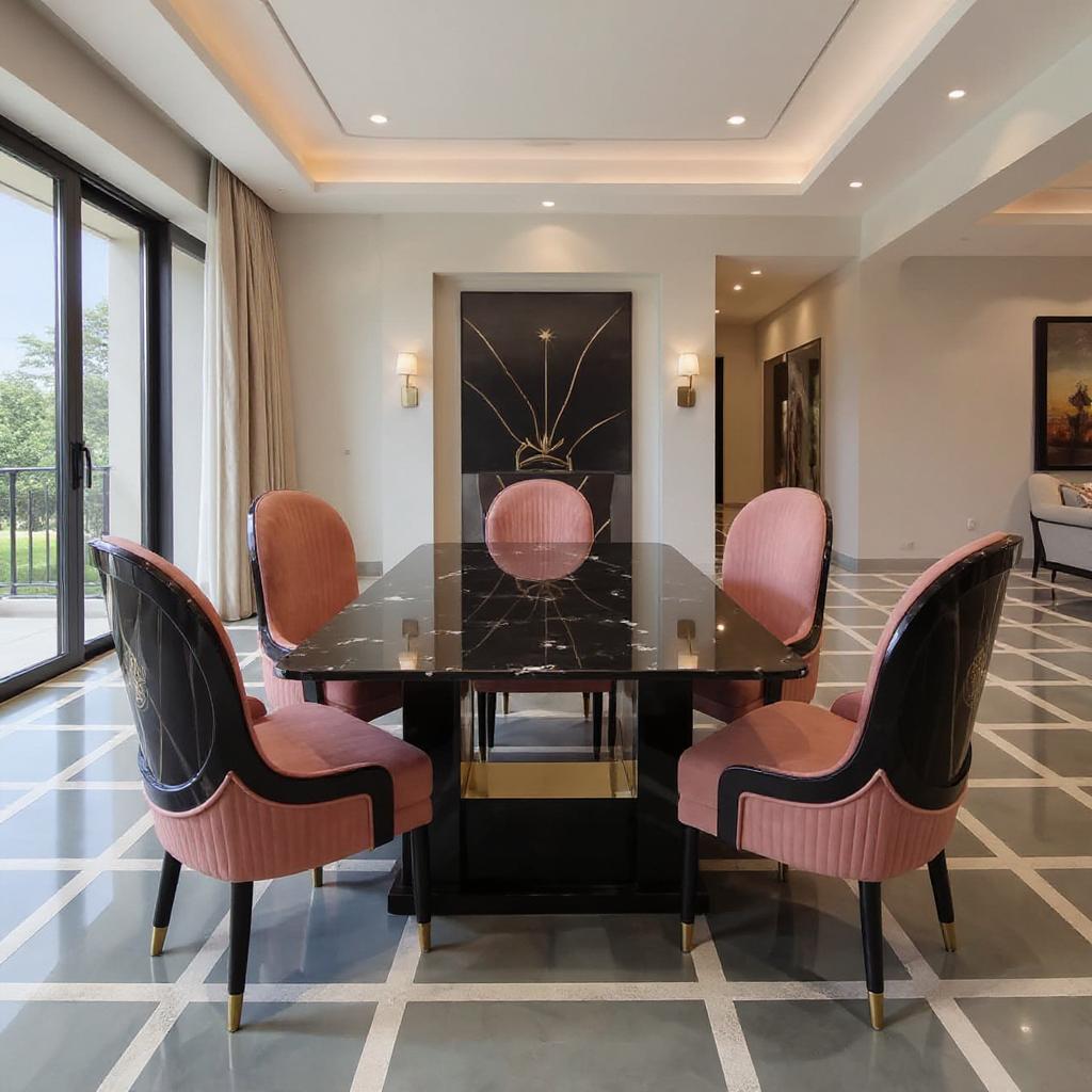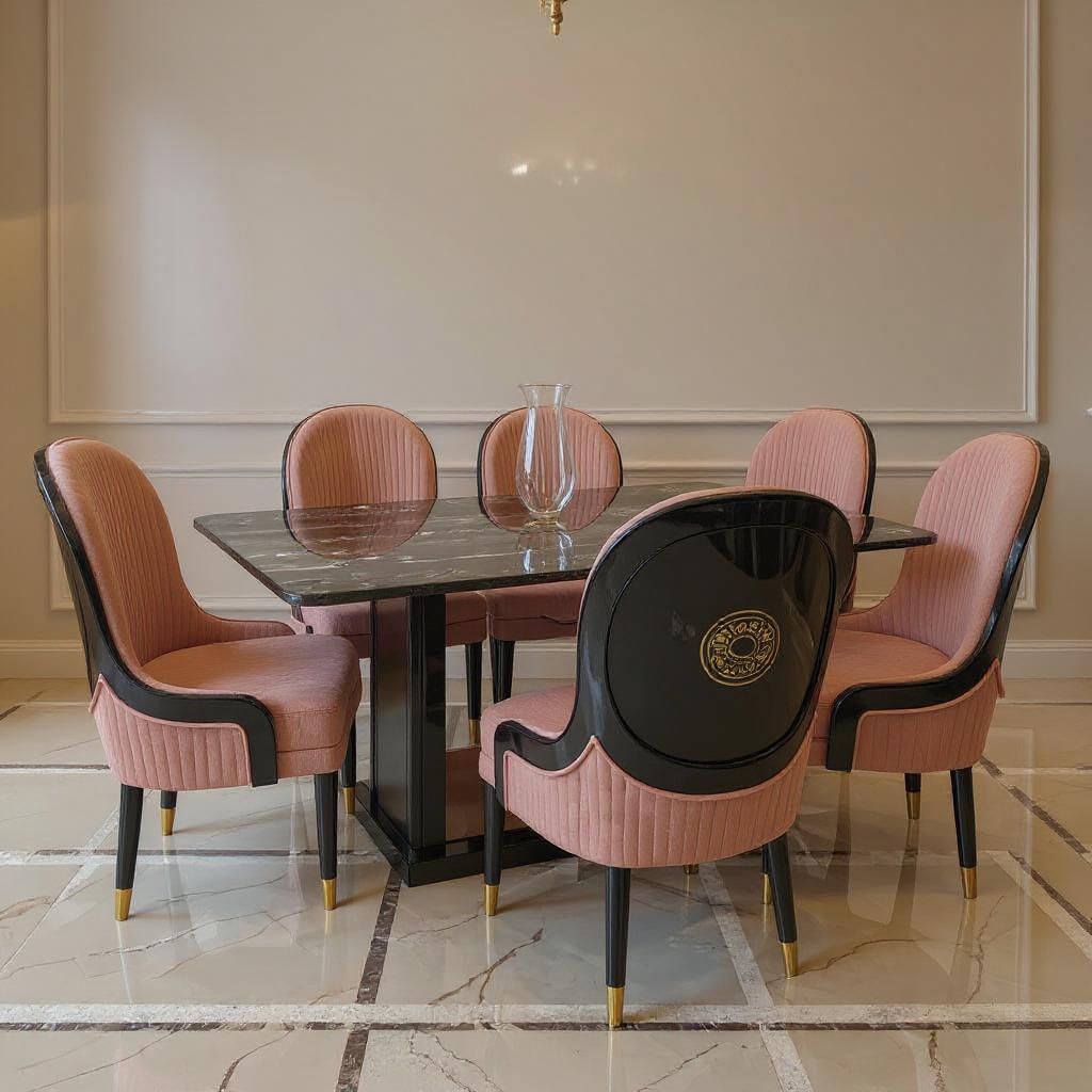 Regal Noir Blush Dining Set – Contemporary Luxury with Soft Elegance
