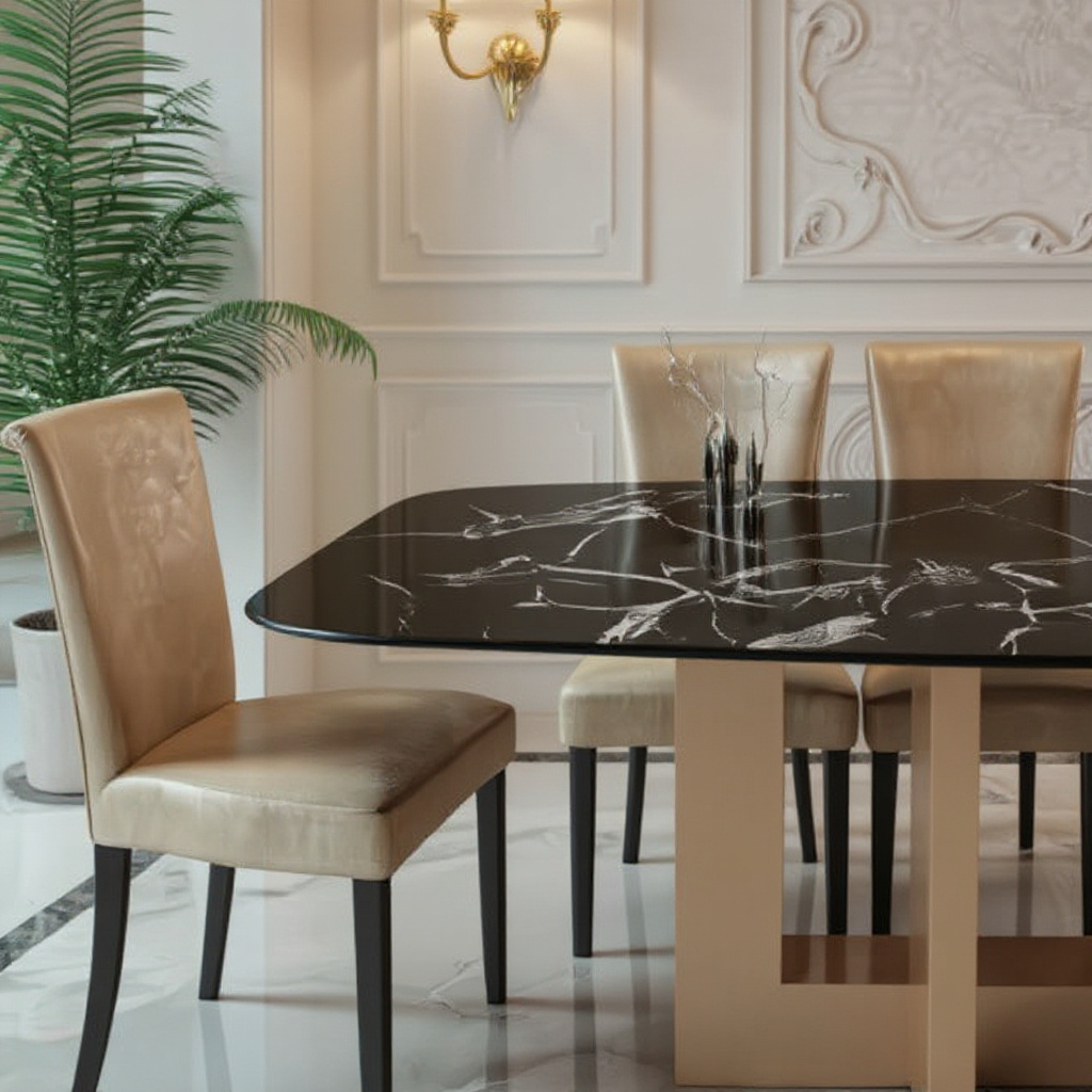A strong choice for homes seeking a luxurious, modern, and art-inspired dining aesthetic