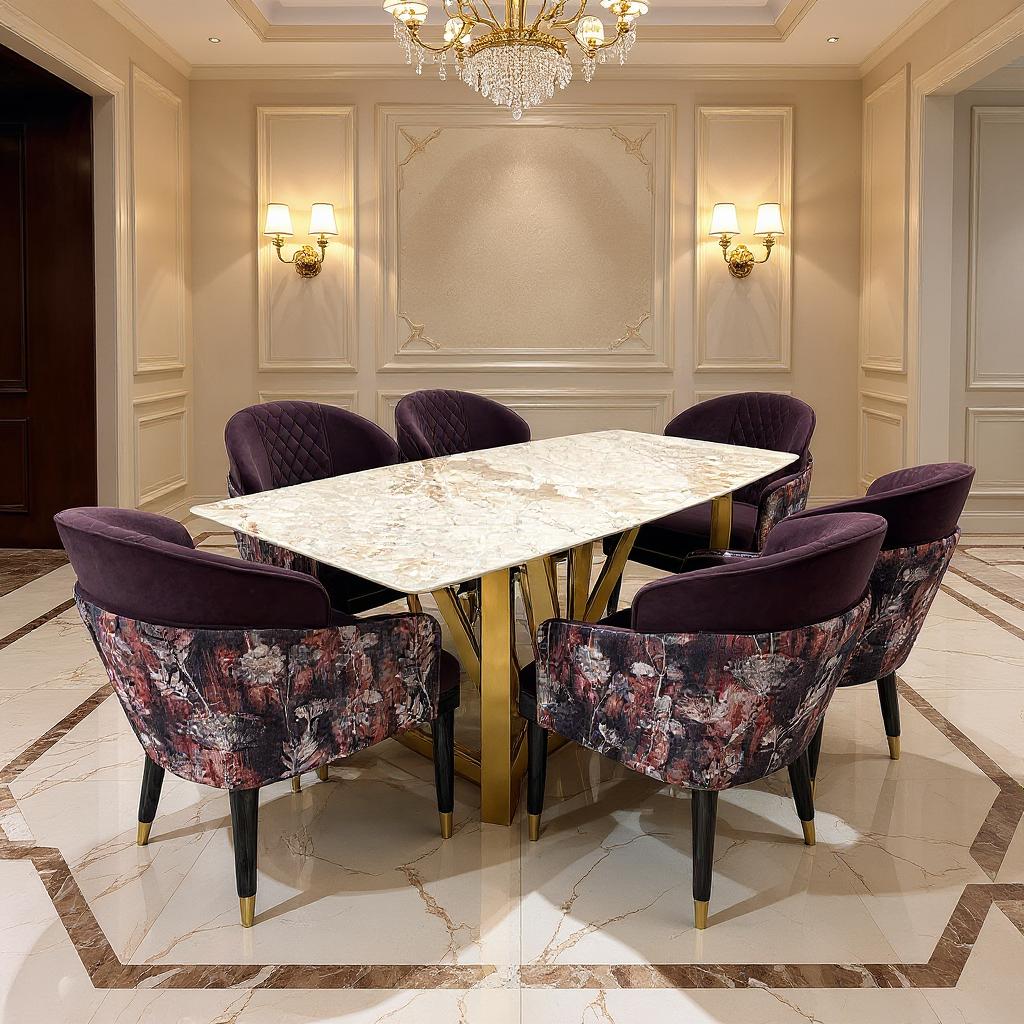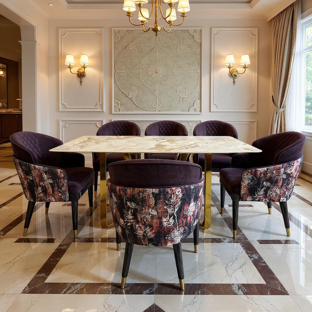 Velvet Regal Marble Dining Set – Opulent Comfort with Artistic Elegance