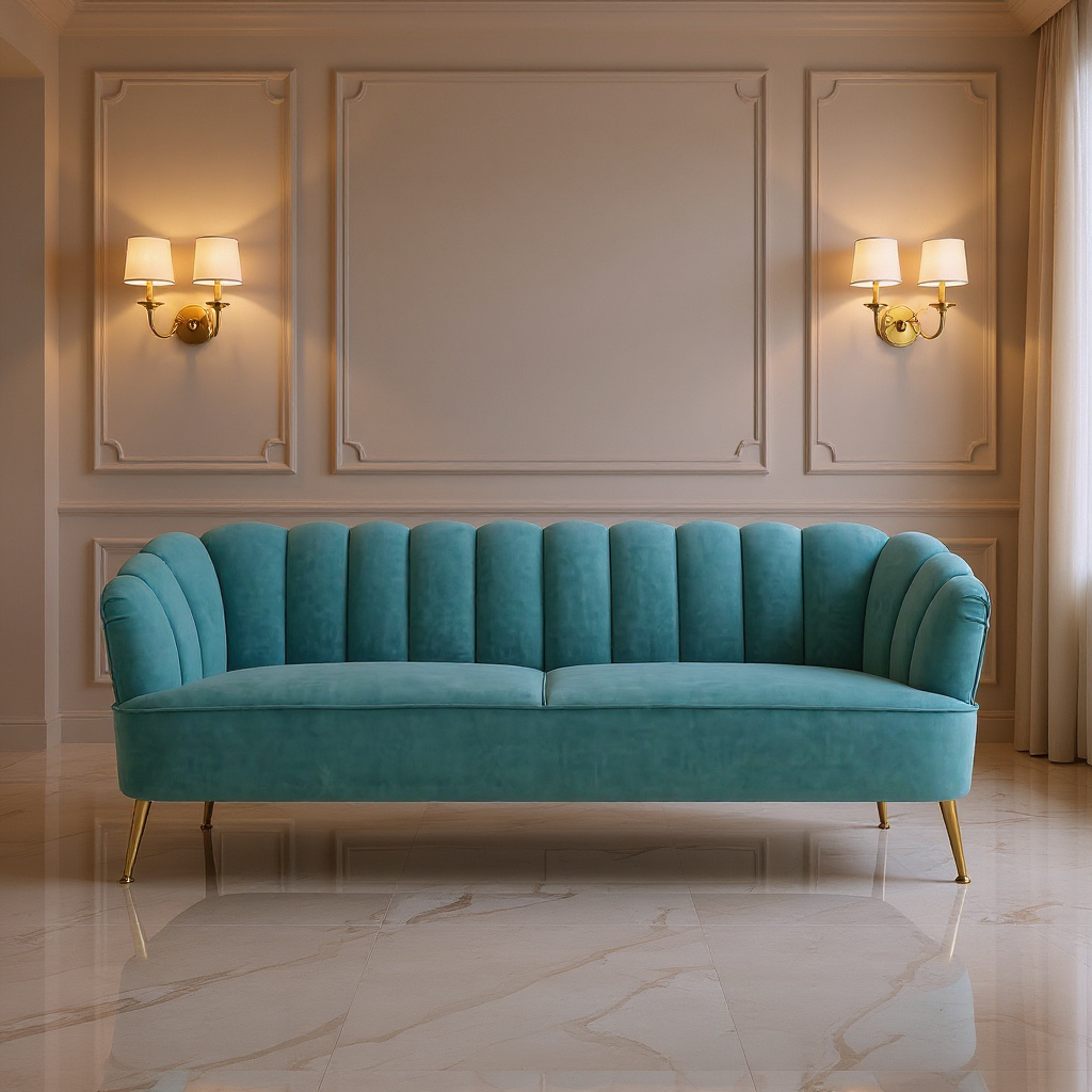 The Aqua Crest Royale Sofa adds a serene yet luxurious statement to your living or bedroom space.