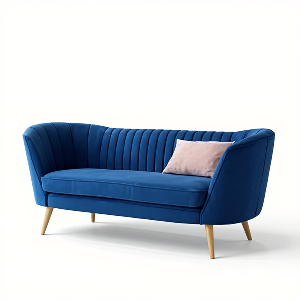 Designed for lovers of functional elegance, this sofa features rich blue upholstery with refined vertical