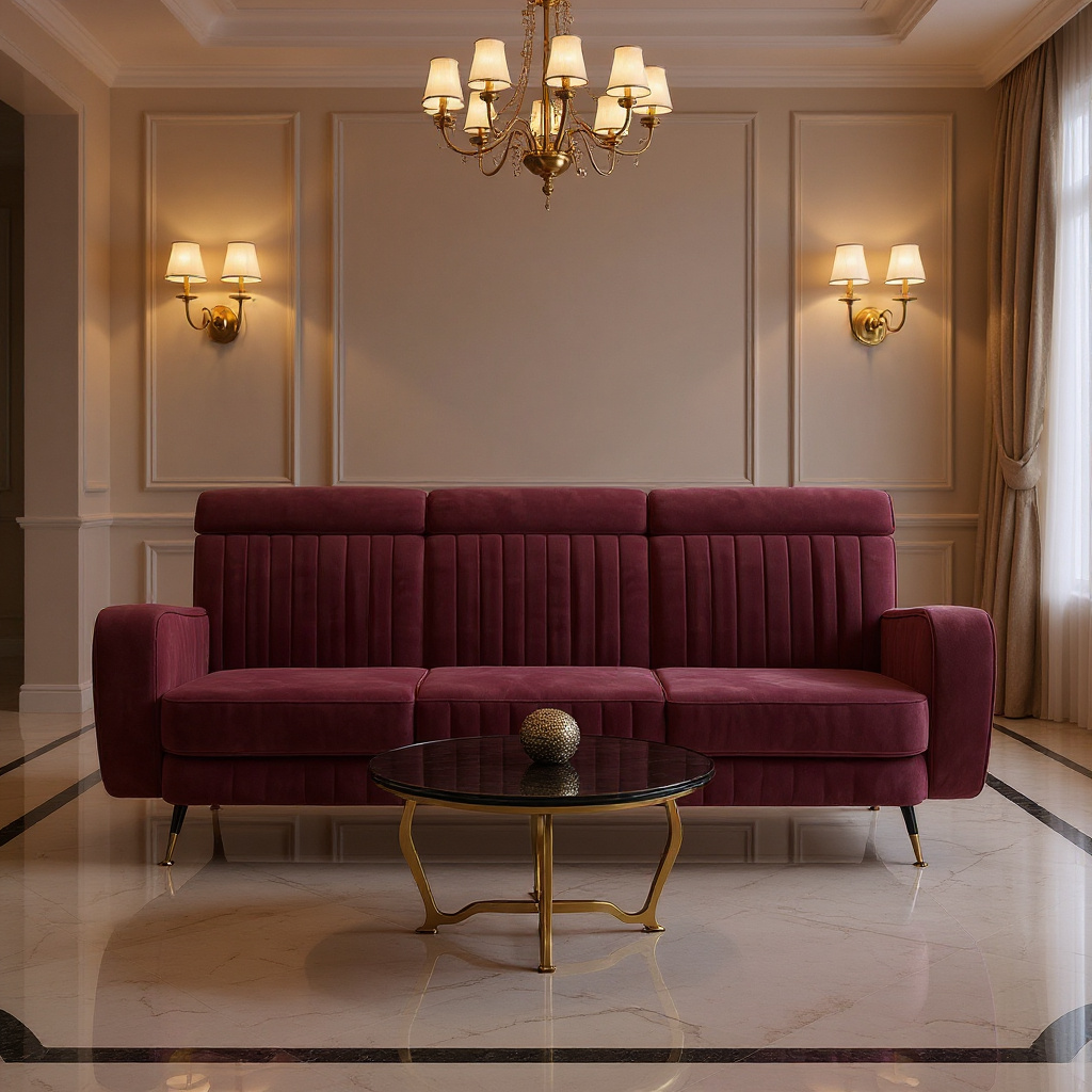 A sophisticated velvet sofa blending plush comfort, classic charm, and modern luxury β€” the