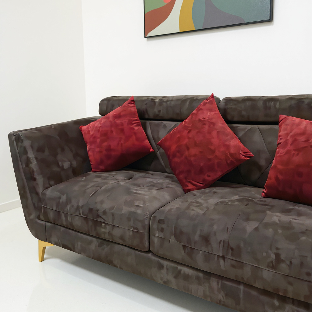 - Ruby-toned accent cushions adding warmth and contrast