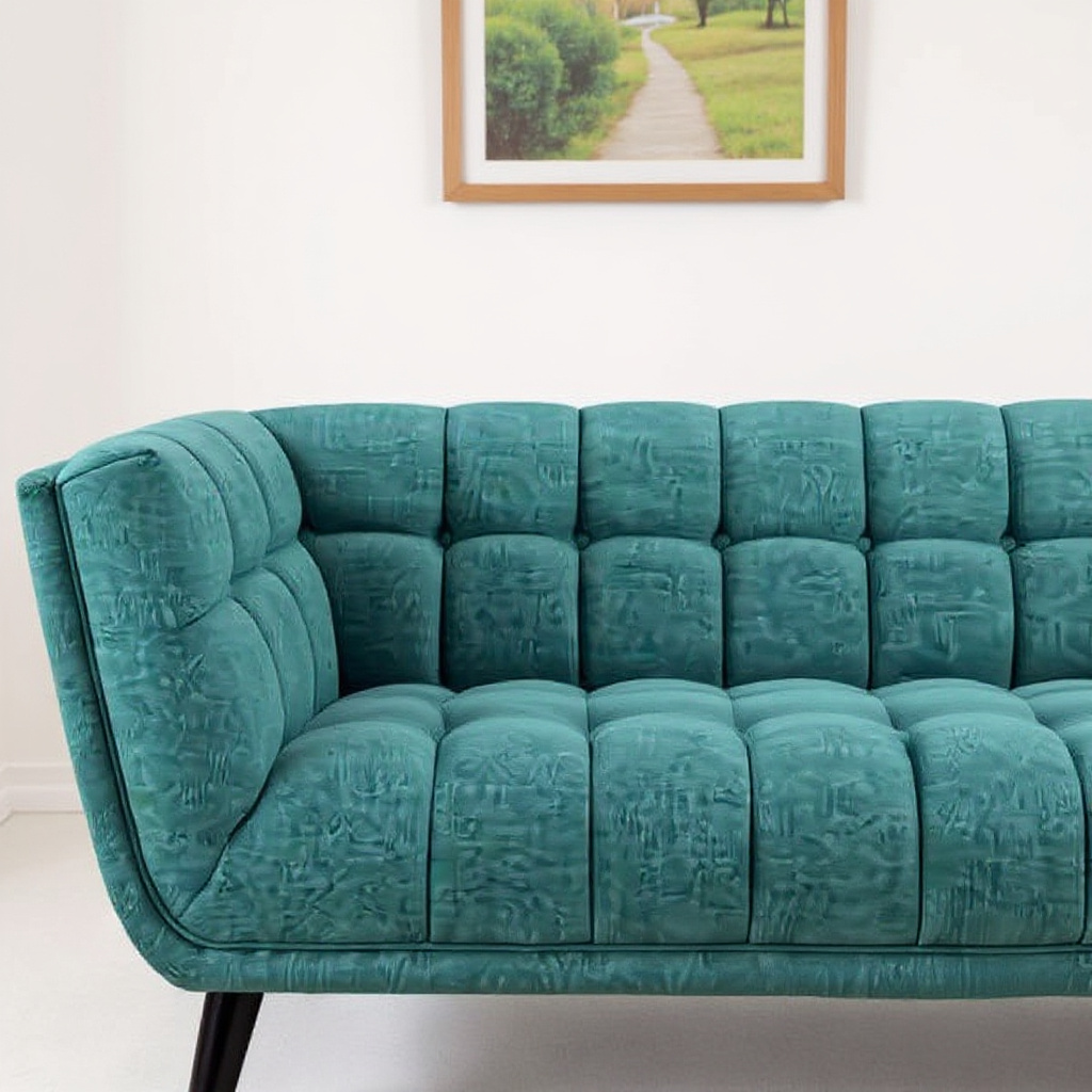 The Luxe Aqua Haven Sofa adds a fresh yet luxurious statement to your living or bedroom space.