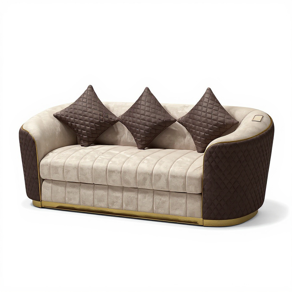 paired with contrasting quilted side panels and refined gold-finish accents. Plush channelled