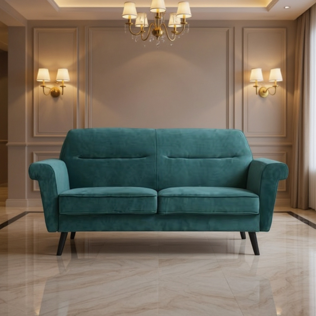 plush comfort, and refined elegance β€” the Serene Teal Haven Sofa.