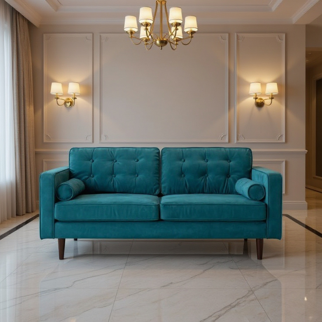 The Teal Haven Luxe Sofa adds a bold yet refined statement to your living space.