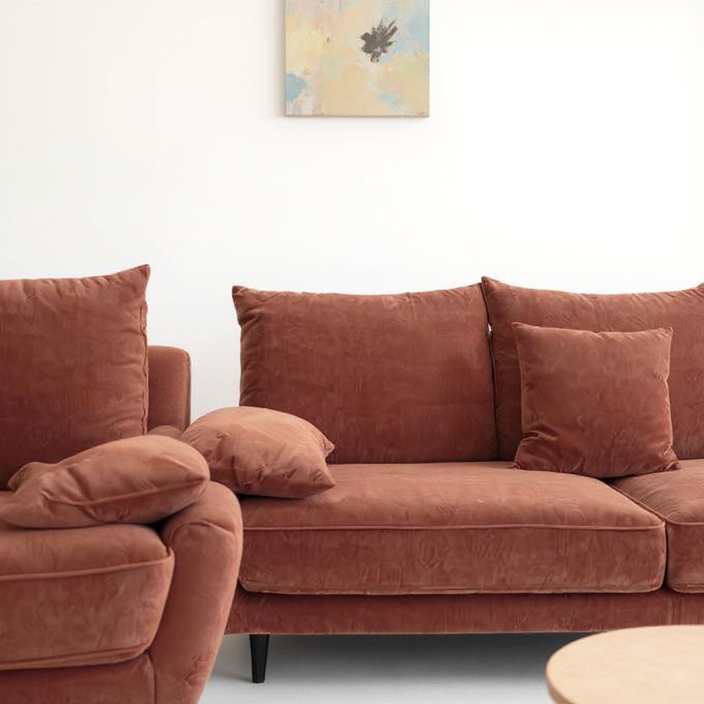 character, and contemporary elegance — the Terracotta Plush Comfort Sofa.